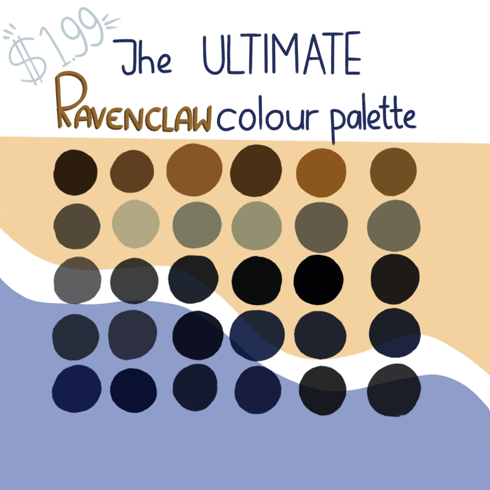 Are you an artist and a Harry Potter geek? Get the ULTIMATE Ravenclaw colour palette now! The Ravenclaw colour palette has the perfect shades for creating a character's outfit from the Hogwarts house, Ravenclaw.